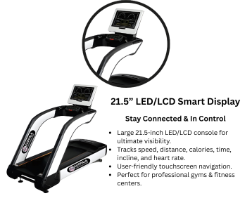 - Smart Display Console: The 21.5-inch LED/LCD screen provides real-time tracking of speed, incline, distance, calories, and heart rate.